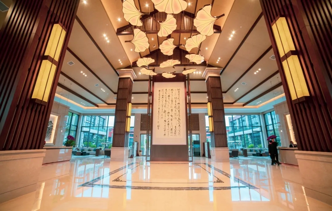 獨具民族特色的建筑風格、高雅的中式大堂、濃郁的中國山水氛圍,亭臺水榭,溪流潺潺,讓顧客產生“店在景中,人在畫中”的效果。漫步在這座五星級酒店內,更能感受到博大鐵軍的“匠心”。